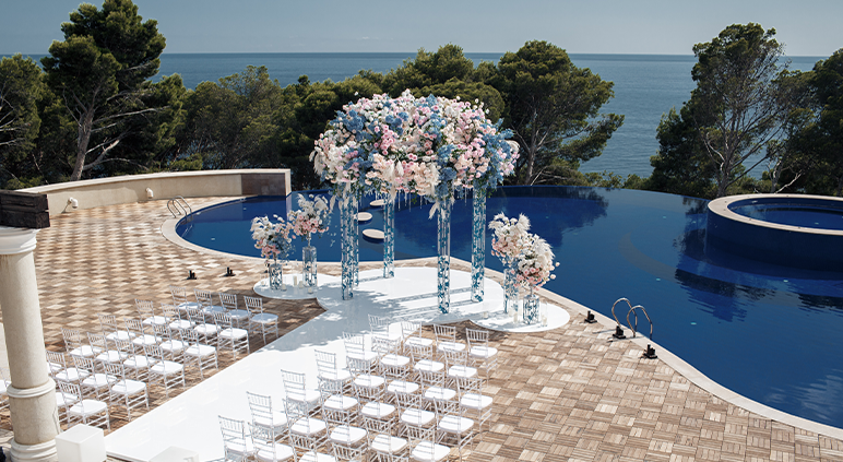 Plongez vos invités dans une ambiance magique grâce à une salle ouverte sur la mer. Idéale pour un mariage, un cocktail ou une célébration intime, cette salle en bord de plage capte la lumière du jour jusqu’au dernier rayon. Un lieu rare, parfait pour créer des souvenirs durables.