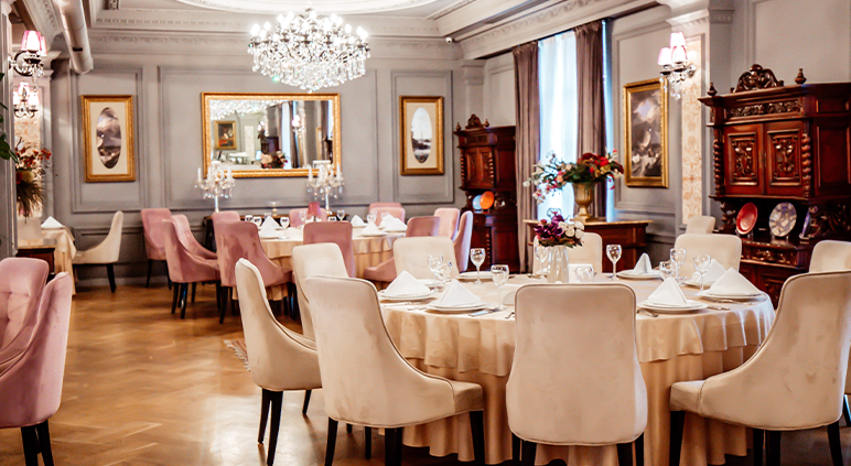 Découvrez des salles de réception au charme authentique et à la décoration soignée, à louer en exclusivité ou à la demi-journée. Plafonds hauts, moulures délicates, mobilier design et lustres anciens contribuent à créer une atmosphère chic et conviviale.